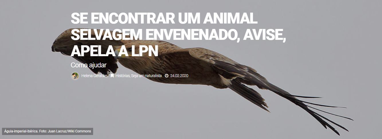 A LPN pede, então, a ajuda de todos. Até porque se acredita que apenas sejam detectados 10% dos animais vítimas dos iscos envenenados.